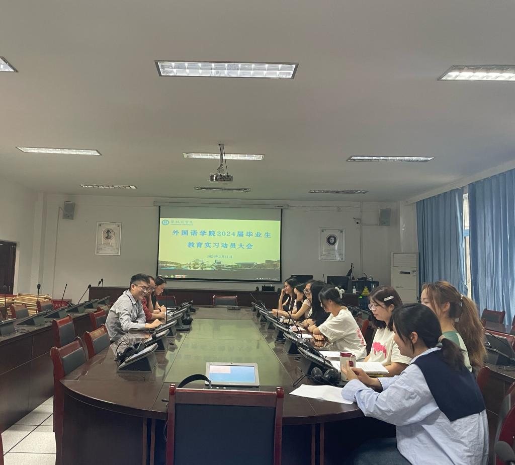 为扎实做好教育实习相关工作安排,保障实习工作顺利开展3月11日下午,外国语学院同传举办了2020级教育实习动员大会。我院党委副书记李翔陈顺江教授和2020级辅导员何旋老师出席,2020级教育集中实习的9位同学参加