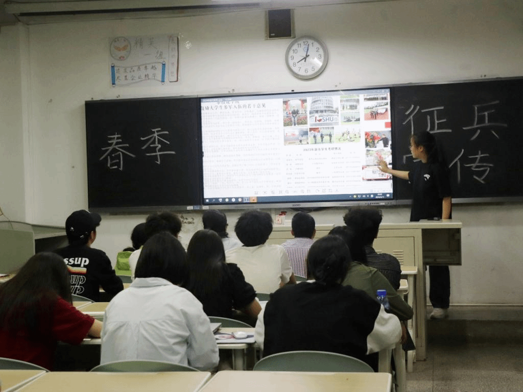 为积极响应国家号召,激励大学生参军入伍,2024年3月11日晚,我院于第一教学楼开展了春季征兵宣传活动,旨在通过广泛宣传征兵政策、军队形象、军人荣誉等来增强全民国防观念,激发更多青年大学生投身国防事业。