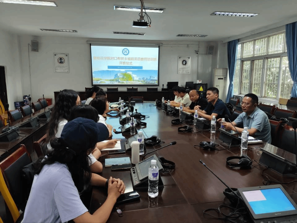 9月15日上午,培训班开班仪式在明德楼三楼会议室举行。学院领导对远道而来的乡城县教师表示热烈欢迎,并介绍了本次培训的整体安排与目标。乡城县教体局教研室教研员谭洪兰作为领队发言,表示将珍惜此次学习机会,积极吸收先进教学理念与方法,推动本地英语教学质量提升。