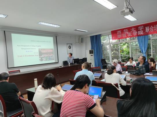大学英语1综合教程课程思政团队成员李静波老师和彭正良老师,听说教程课程思政团队成员过俊老师和艺术及专科课程负责人钟玉国老师分别就自己负责的教材单元课程思政教学设计做了详细的介绍。