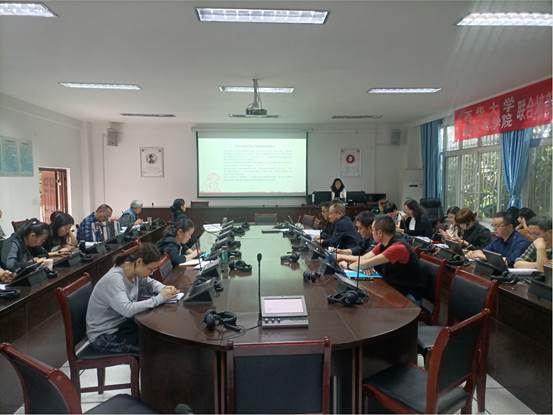 2021年11月3日下午,我院英语专业教研室在明德楼同传室开展了课程思政专题教学研讨会。该教研活动由我院党委副书记李翔主持,学院领导和全体专职教师参加研讨,学校督导梁志军、孙鹏两位专家全程参与并点评。
