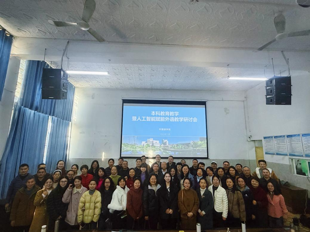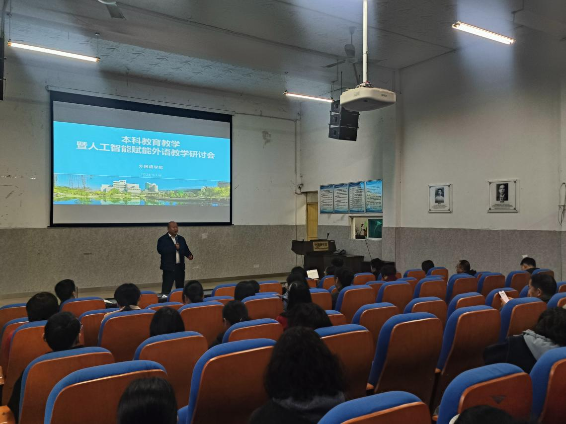 2026年1月14日上午,外国语学院本科教育教学研讨会暨人工智能赋能外语教学研讨会在外国语多功能厅顺利召开。会议旨在系统总结学院2025年在教育教学、学科竞赛、课程建设、教学研究及人工智能融合应用等方面取得的丰硕成果与宝贵经验,共同探索未来发展方向,以进一步提升全院教师的教育教学能力与创新实践水平。
