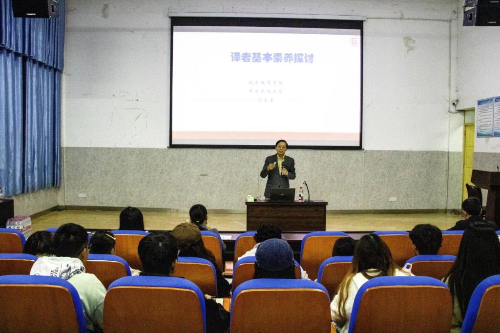 11月25日-26日,学院邀请中央民族大学博士生导师、二级教授、资深翻译家何克勇教授来我院讲学。2025级英语笔译研究生及全院教师参加。