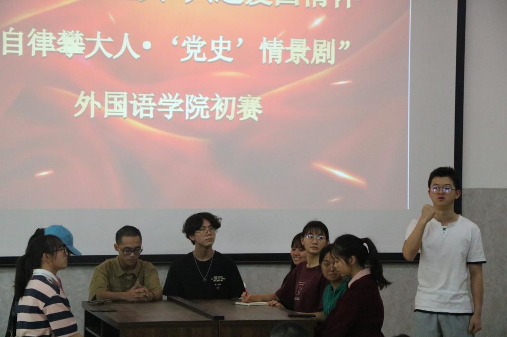 43日下午,我院自律攀大人•‘党史情景剧初赛在多功能厅顺利举行。