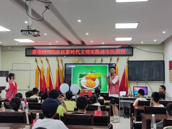 第二天,队员们借助课件教小朋友学习水果的英语单词,课堂生动有趣,小朋友们积极与队员们互动。下午,社区两位老党员为小朋友们讲述了共产党的发展历程,通过自身经历告诫小朋友们要珍惜革命先辈用鲜血和生命换来的幸福生活。接着,队员和小朋友们一起观看了电影《中国机长》,对人民英雄致以崇高的敬意。随后,队员们来到米易县烈士陵园瞻仰烈士墓,在讲解员的带领下学习铁道兵烈士的光荣事迹。
