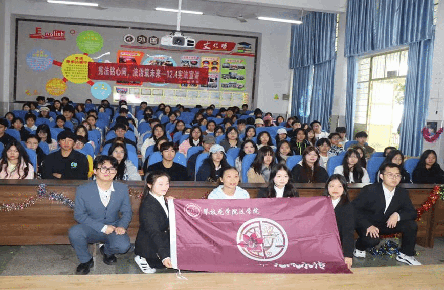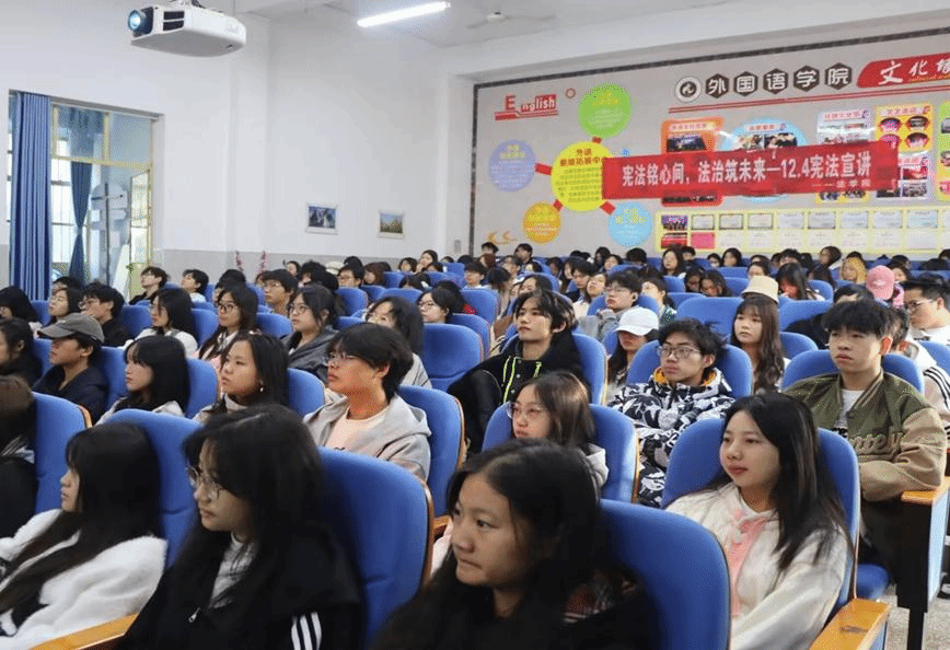 2024年12月1日,我院学生会联合法学院宪法宣讲团于外语多功能厅成功举办宪法宣讲活动,我院各年级学生参与其中。