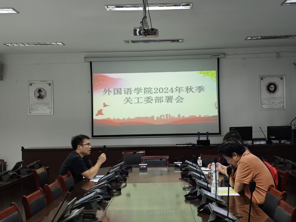 2024年10月24日下午,外国语学院在明德楼三楼同传室召开了秋季关工委工作部署会。本次会议旨在深化师生互动,推动学生全面发展,由外国语学院分团委书记李树勇主持,外国语学院关工委教师邓兴义和张彦青出席,以及结对帮扶学生罗啸和林祝民参加。