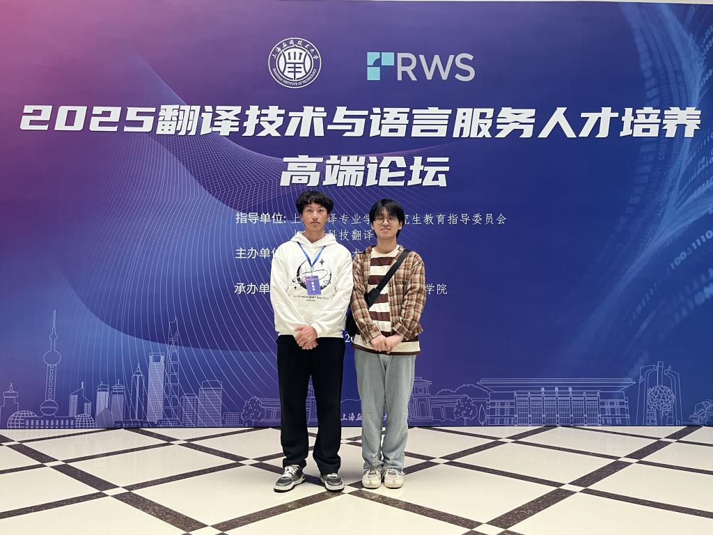 “2025翻译技术与语言服务人才培养高端论坛”于2025年11月6-7日在上海应用技术大学举办,论坛聚焦人工智能大模型前沿技术在语言服务领域创新应用,如何通过数智化语言服务人才培养提升国际传播效能,构建融通中外的翻译技术话语体系。我院硕士生导师刘春亮副教授、常伟老师及孙久媚老师带领两名2025级翻译硕士研究生赴沪参加此次论坛,深入了解最新行业动态与前沿研究成果。